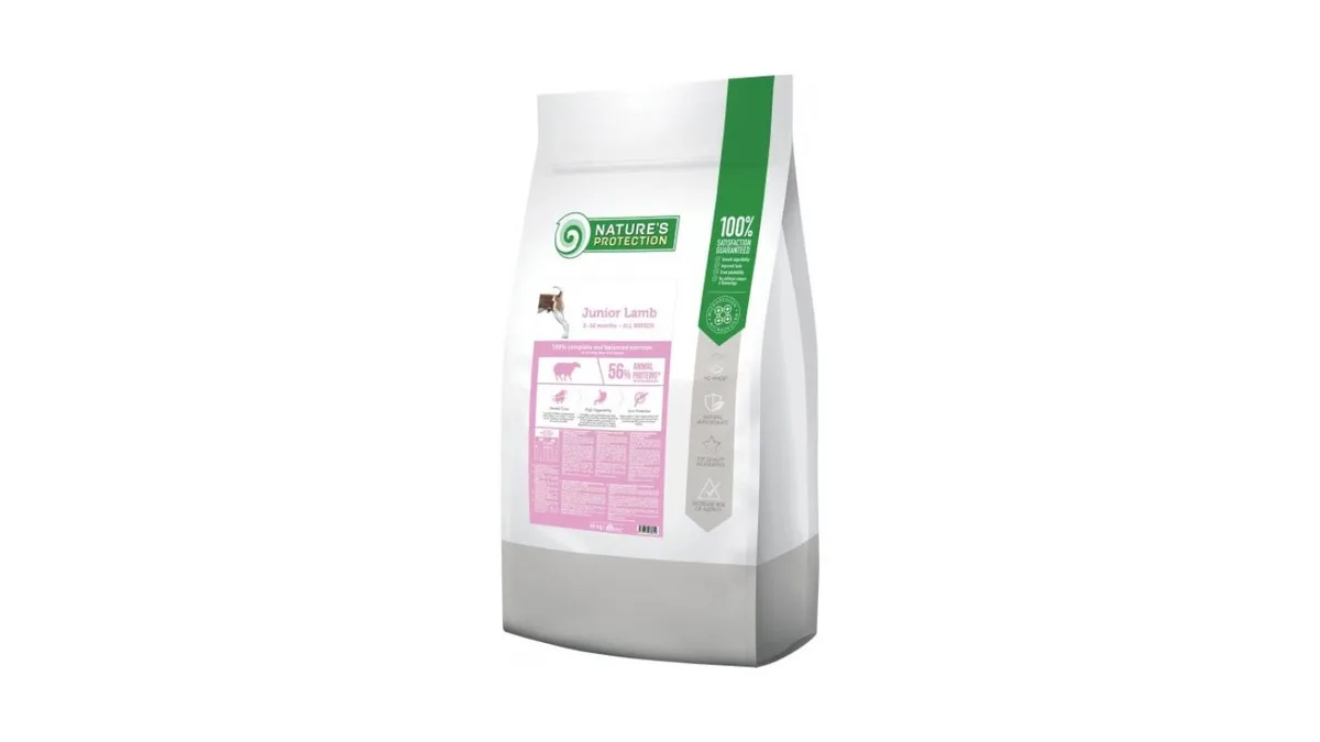 Nature's Protection Junior Lamb ягненок- это сухой корм с ягненком, разработанный для растущих молодых собак (2-18 месяцев).