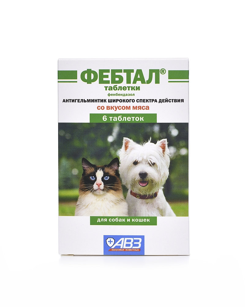 Фебтал — эффективный антигельминтный препарат для собак и кошек, используемый для лечения и профилактики токсокароза, токсаскариоза, унцинариоза, анкилостомоза, гидатигероза, дипилидиоза и тениидозов. Препарат содержит фенбендазол, который губительно действует на все стадии развития нематод и цестод.