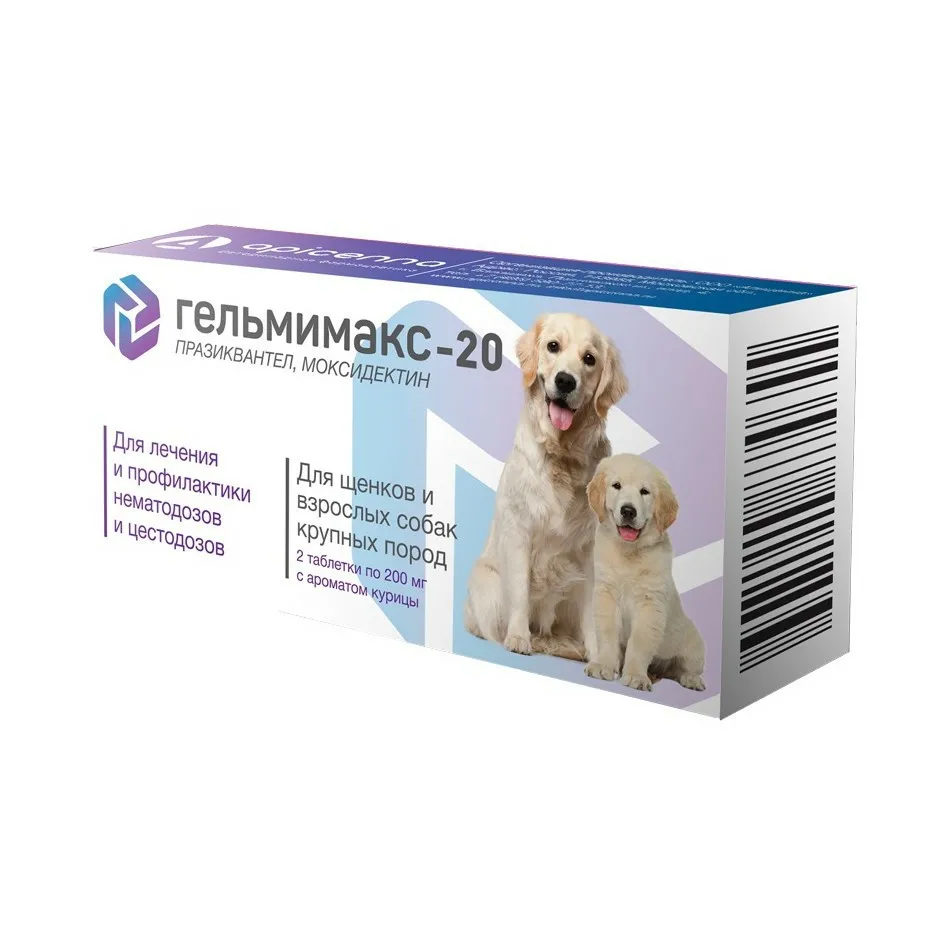 Гельмимакс-20 — инновационный антигельминтный препарат, активный против 13 видов гельминтов. Он используется для профилактики и лечения желудочно-кишечных нематодозов и цестодозов у щенков и собак крупных пород.