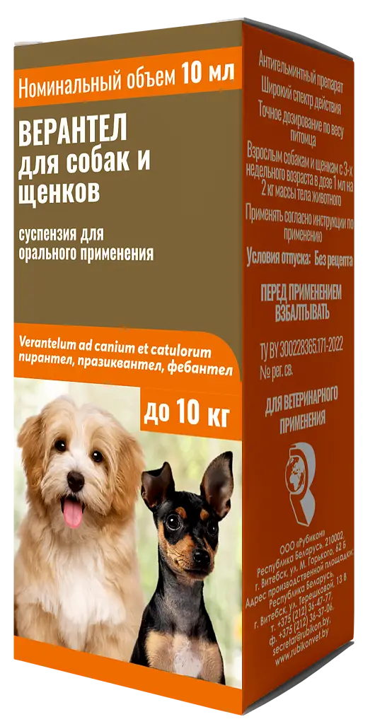 Где купить Верантел для собак в Минске? Заказать с доставкой по Беларуси? В интернет-магазине '4pets' вы найдете лучшие цены на суспензию от глистов для щенков и другие зоотовары. Мы предлагаем удобную доставку по всей Беларуси, включая Минск и Минский район. Оформите заказ прямо сейчас!