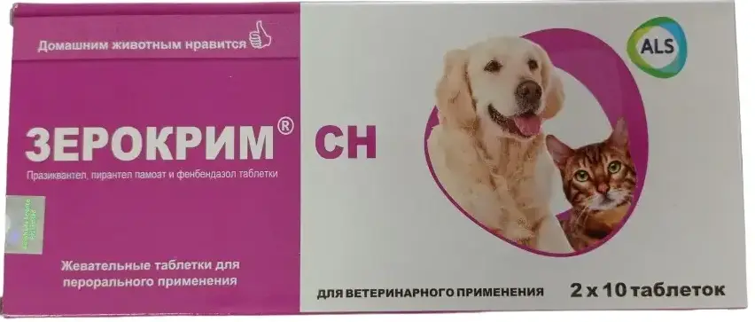 Зерокрим СН — эффективный антигельминтный препарат для собак и кошек, предназначенный для лечения и профилактики паразитарных инвазий. Он содержит комбинацию фенбендазола, пирантел памоата и празиквантела, что обеспечивает широкий спектр действия против круглых и ленточных червей.