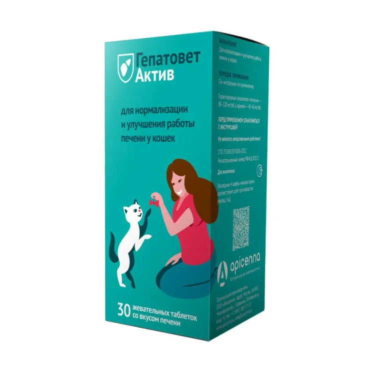 Гепатовет Актив — это жевательные таблетки, предназначенные для нормализации и улучшения работы печени и желчного пузыря у кошек. Они не имеют противопоказаний к применению и имеют приятный вкус и запах печени, что делает их более привлекательными для животных.