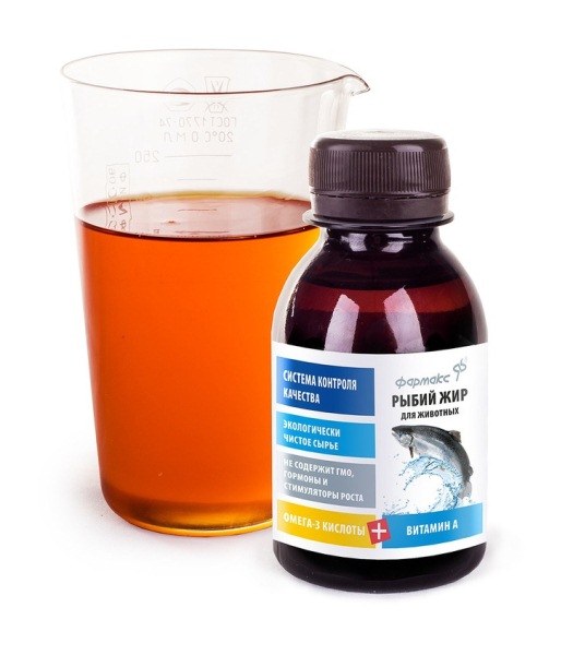 Добавка содержит жир ветеринарный из рыбы и морских млекопитающих с витамином А. Выпускается в бутылках по 100 мл.